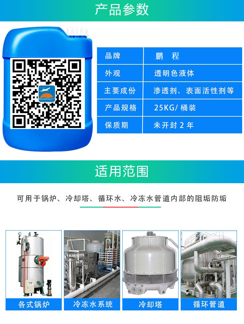 由有機(jī)膦酸、聚羧酸、金屬鹽醇脂類(lèi)化合物及緩蝕劑復(fù)配而成的具有螯合、分散性能的復(fù)合阻垢劑,具有最佳協(xié)同效應(yīng),能夠使成垢晶體產(chǎn)生晶格畸變,使垢層疏松或分散在水中被水沖走,以保持管道的正常運(yùn)行對(duì)水中的碳酸鈣、