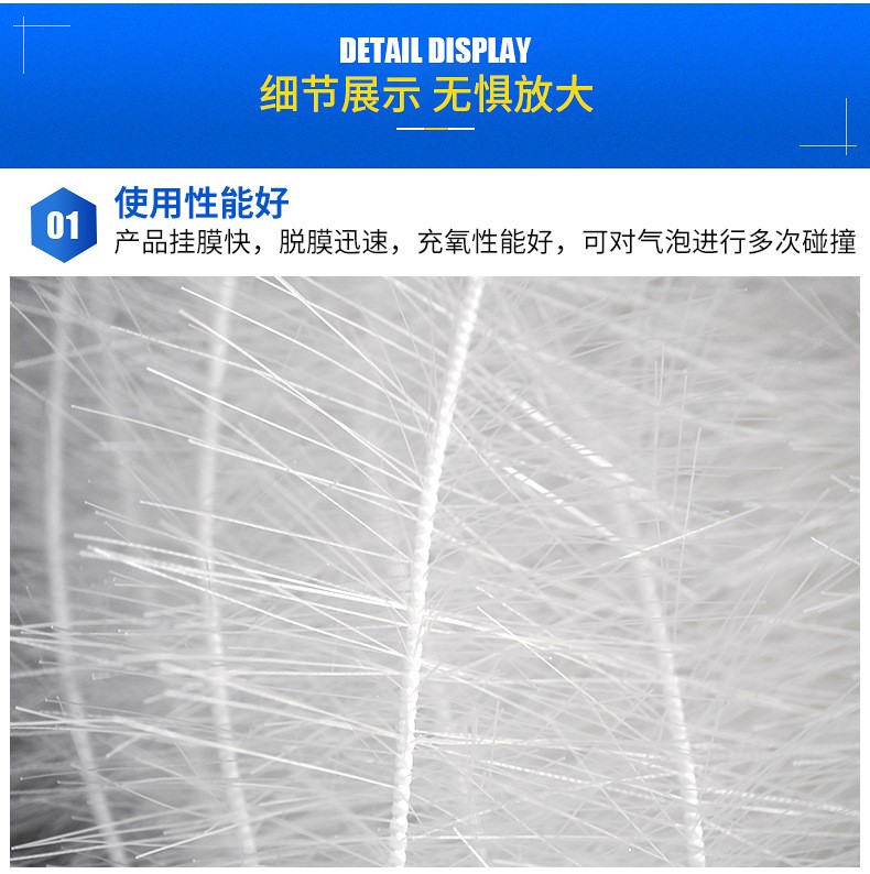 懸掛式立體彈性填料具有高活性,在填料表面生長(zhǎng)的微生物膜與填料流化碰撞,曝氣沖刷使微生物處于高活性,處理效果很好。選用聚酰胺 聚稀類等耐腐 奶高溫 耐老化材料,具有親水 吸附 抗熱等優(yōu)勢(shì)。