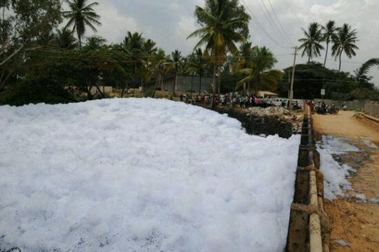 繼印度Varthur湖面因污染嚴(yán)重泛起泡沫之后,現(xiàn)在輪到Bellandur湖附近的居民擔(dān)心了。這些泡沫甚至還燃起了火苗,讓當(dāng)?shù)鼐用窈吐愤^的人都非常驚慌。 在過去幾周,班加羅爾的Bellandur湖被幾英尺厚的白色有毒泡沫覆蓋,遠(yuǎn)看就如白雪一般。而在白色泡沫之下,是被化學(xué)物質(zhì)和污水污染而變成黑色的湖水。附近的濕地過去對湖水起到了過濾的作用,卻都已經(jīng)在開發(fā)過程中被破壞了。失去了具有天然凈化作用的濕地,這些湖的污染變得很難控制。 當(dāng)?shù)匚廴局卫砭值墓賳T表示,這是第一次人們觀察到這種現(xiàn)象。